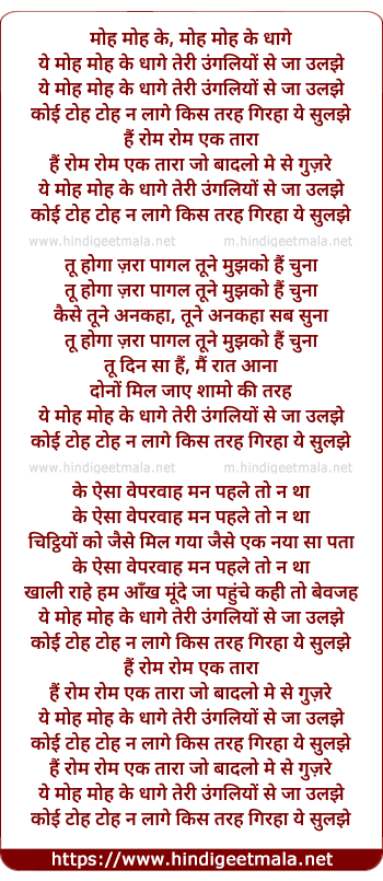 Lyrics of Moh Moh Ke Dhaage - मोह मोह के, मोह मोह के धागे