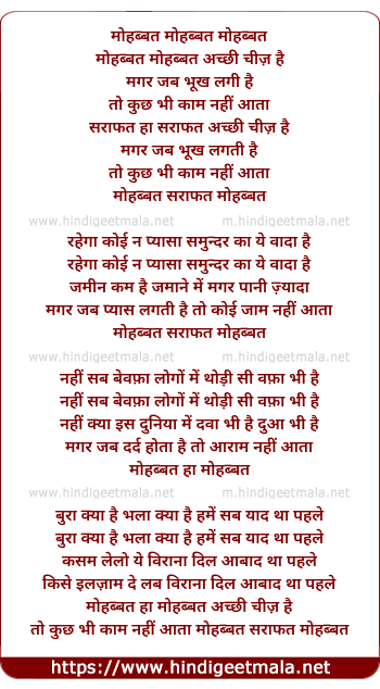 Lyrics of Mohabbat Aachhi Cheez Hai Magar Jab Buhk Lagti Hai To Kuch Bhi Kaam Nhi Aata - मोहब्बत अच्छी चीज़ है जब भूख लगती है तो कुछ भी काम नहीं आता