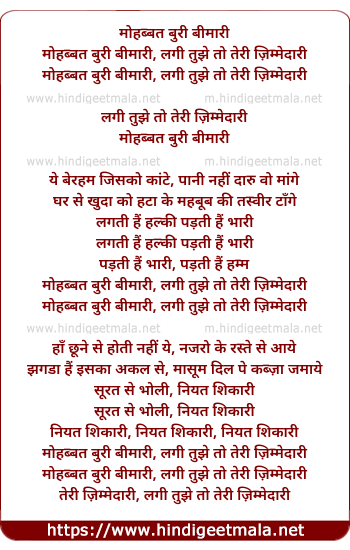 mohabbat buri bimari, lagi tujhe to teri zimmedari