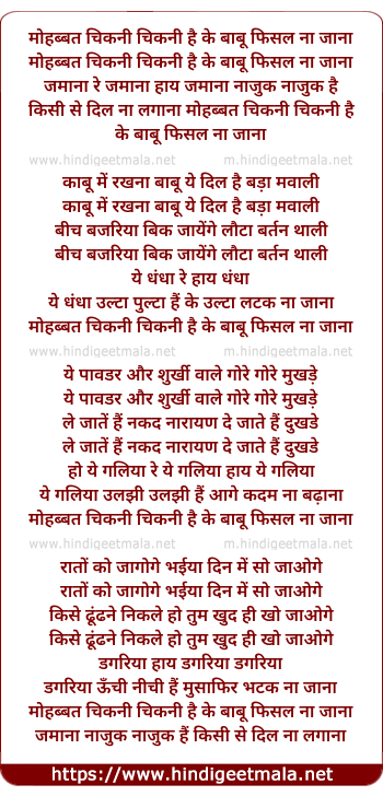Lyrics of Mohabbat Chikni Chikni Hai - मोहब्बत चिकनी चिकनी है