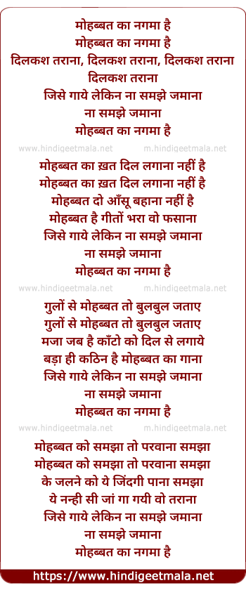 Lyrics of Mohabbat Ka Nagma Hai Dilkash Tarana - मोहब्बत का नगमा है दिलकश तराना