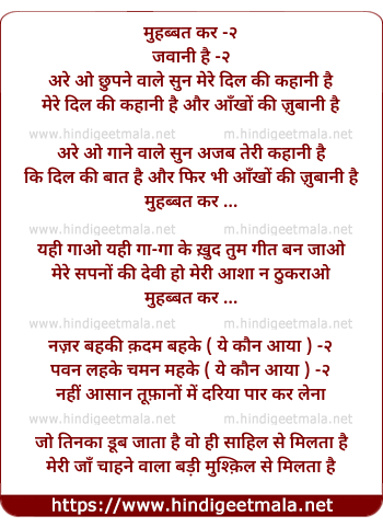 Lyrics of Mohabbat Kar Jawani Hai - मुहब्बत कर -२