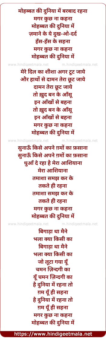 Lyrics of Mohabbat Ki Duniya Mein Barbad - गी : मोहब्बत की दुनिया में बरबाद रहना