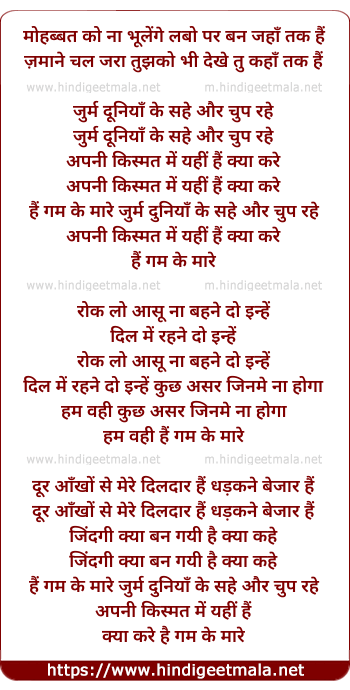 Lyrics of Mohabbat Ko Na Bhulenge - मोहब्बत को ना भूलेंगे