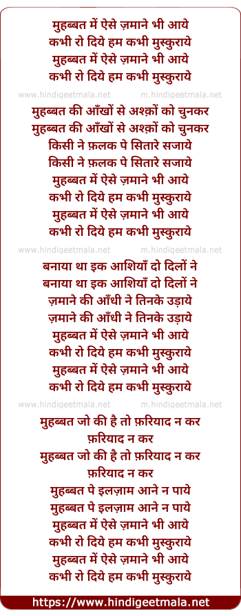 Lyrics of Mohabbat Mein Aise Zamane Bhai Aaye - मुहब्बत में ऐसे ज़माने भी आये