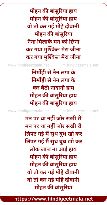 Lyrics of Mohan Ki Bansuriya (Version 1) - मोहन की बांसुरिया हाय