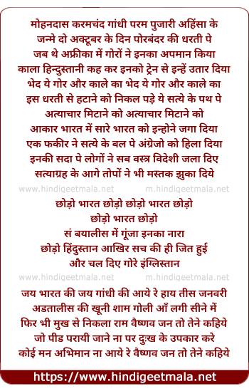 Lyrics of Mohandas Karamchand Gandhi Ahinsa Ke - मोहनदास करमचंद गांधी अहिंसा के