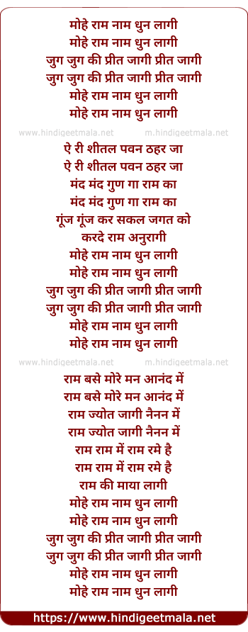 Lyrics of Mohe Ram Nam Dhun Laagi - मोहे राम नाम धुन लागी