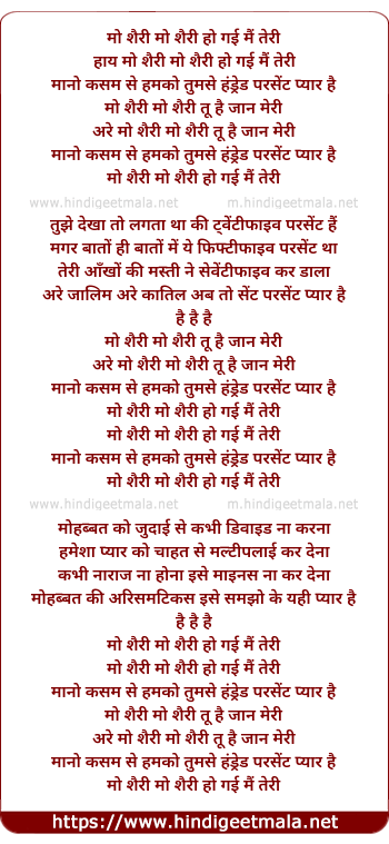 Lyrics of Mon Cheri - मो शैरी मो शैरी हो गई मैं तेरी
