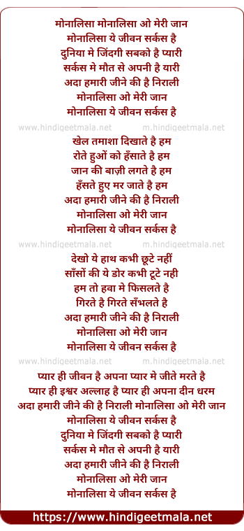 Lyrics of Monalisa O Meri Jaan - मोनालिसा ओ मेरी जान