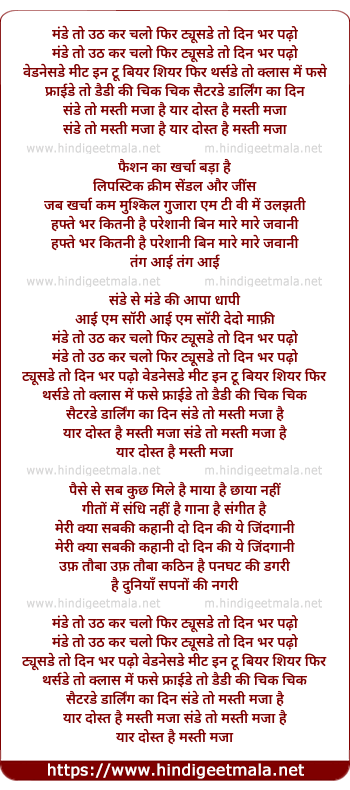 Lyrics of Monday To Uth Kar Chalo Fir - मंडे तो उठ कर चलो फिर