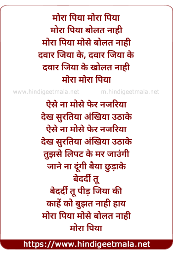 Lyrics of Mora Piya Mose Bolat Nahi (Remix) - मोरा पिया मोसे बोलत नहीं