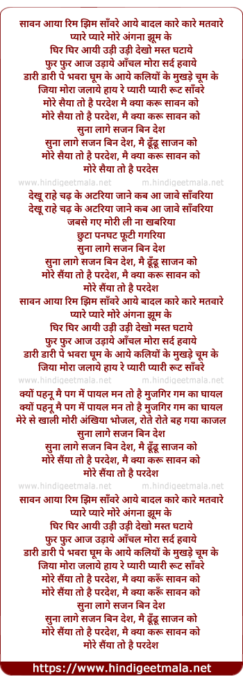 Lyrics of More Saiyan To Hai Pardes - मोरे सैया तो है परदेस