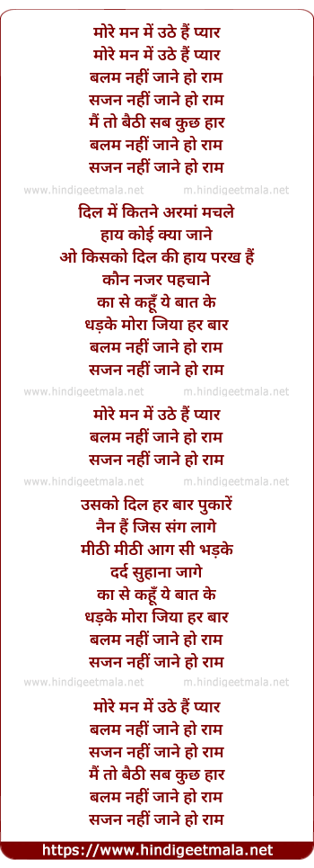 Lyrics of More Man Mein Uthe Hai Pyar - मोरे मन में उठे हैं प्यार
