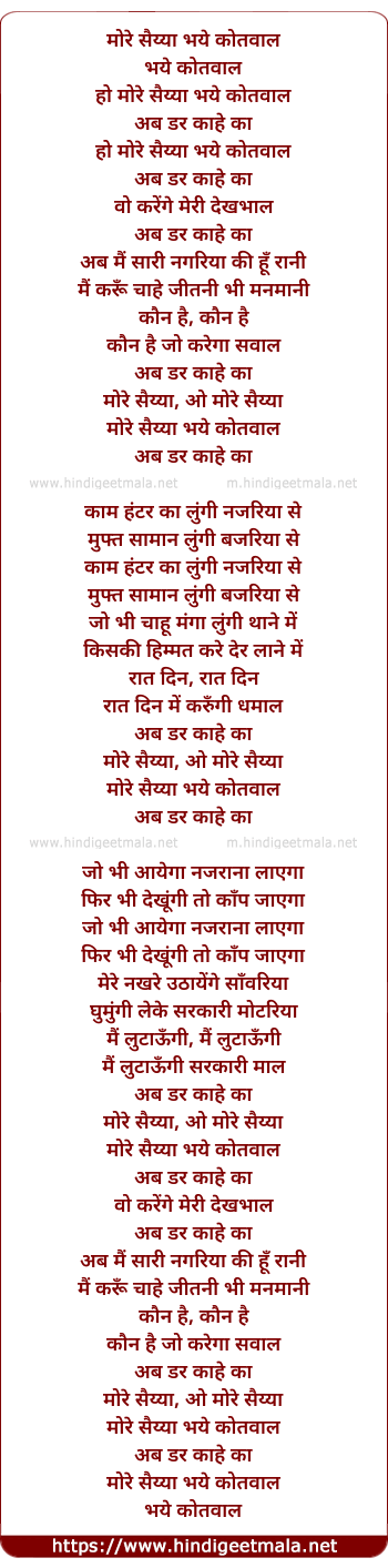 Lyrics of More Saiya Bhaye - मोरे सैय्या भये