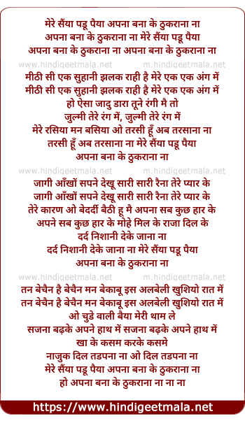 Lyrics of More Saiyya Padu Paiya - मेरे सैंया पडू पैया