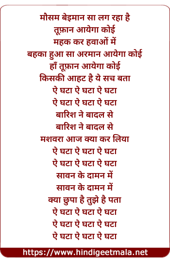 Lyrics of Mousam Beiiman - मौसम बेइमान
