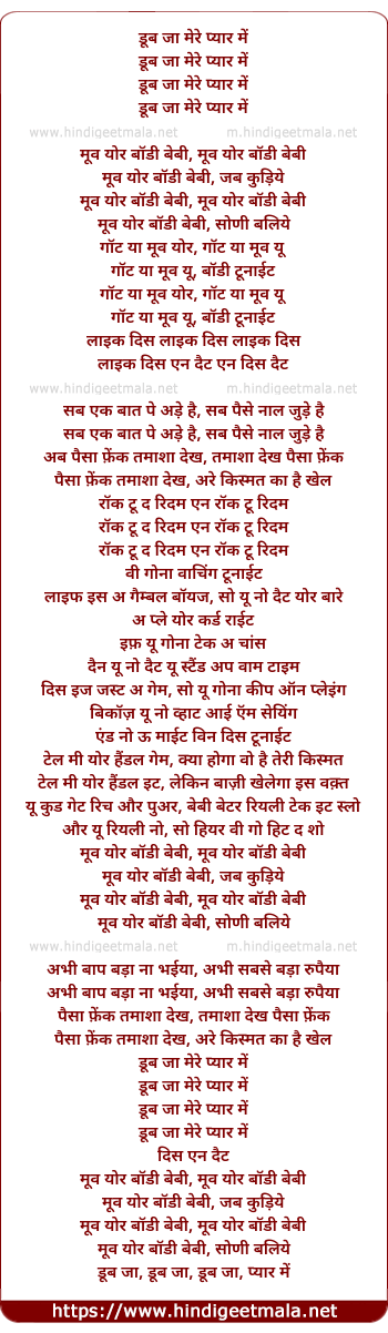 Poetic Translation - Lyrics of Move Ur Body Baby - मूव योर बॉडी बेबी