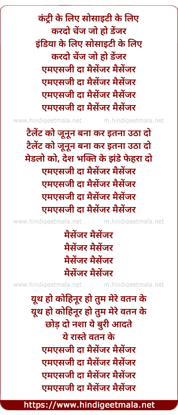 Lyrics of Msg The Messenger (Remix) - कंट्री के लिए सोसाइटी के लिए