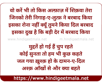 Lyrics of Muddaten Ho Gai Hain Chup Rahate - वो करें भी तो किस अल्फ़ाज़ में शिक़वा तेरा