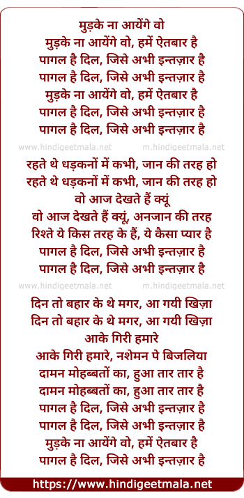 Lyrics of Mudke Na Ayenge Wo - मुड़के ना आयेंगे वो