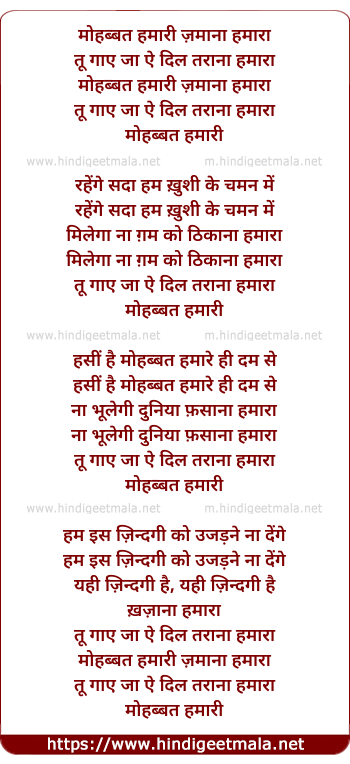 Lyrics of Muhabbat Hamari Jamana Hamara - मोहब्बत हमारी ज़माना हमारा