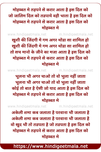 Lyrics of Mohabbat Me Tadpne Se Karar Aata Hai Iss Dil Ko - मोहब्बत मे तड़पने से करार आता है इस दिल को
