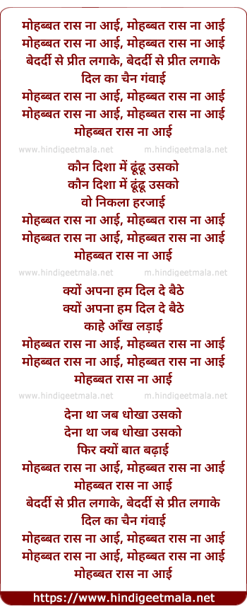 Lyrics of Muhabbat Raas Na Aayi - मोहब्बत रास ना आई, मोहब्बत रास ना आई