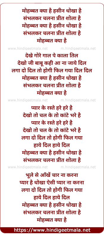 Lyrics of Muhobbat Kya Hai Hasin Dhokha Hai
