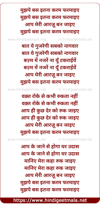 Lyrics of Mujh Pe Bas Itna Karam Farmaiye - मुझपे बस इतना करम फरमाइए