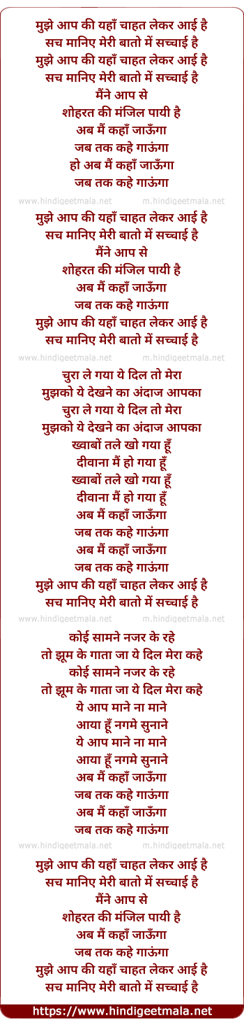 Lyrics of Mujhe Aap Ki Yahan Chaahat - मुझे आप की यहाँ चाहत