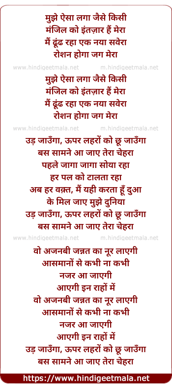 Lyrics of Mujhe Aisa Laga - मुझे ऐसा लगा जैसे किसी