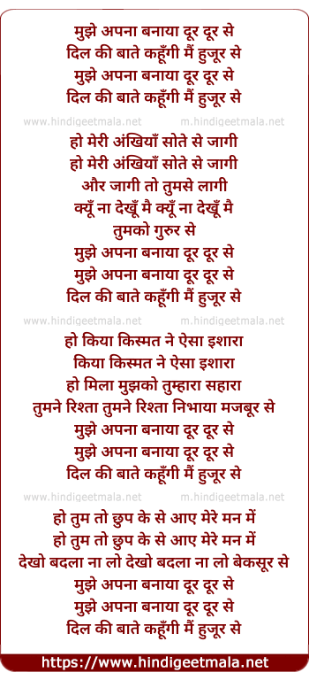 Lyrics of Mujhe Apna Banaya Door Door Se - मुझे अपना बनाया दूर दूर से