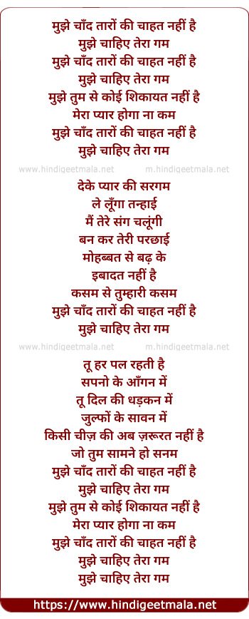 Lyrics of Mujhe Chand Taro Ki Chahat Nahi - मुझे चाँद तारों की चाहत नहीं