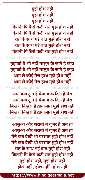 Lyrics of Mujhe Hosh Nhi - मुझे होश नहीं
