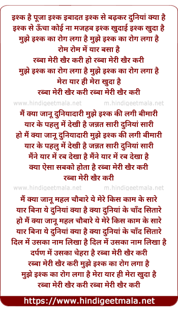 rabba meri khair kari mujhe ishk ka rog laga hai