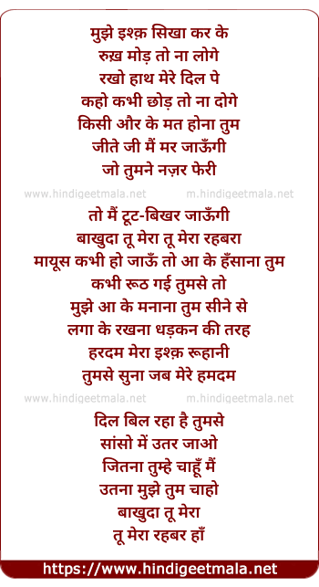 Lyrics of Mujhe Ishq Sikhaa Karke - मुझे इश्क सिखा करके