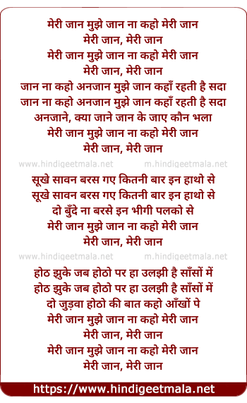 Lyrics of Mujhe Jaan Na Kaho, Meri Jaan, Meri Jaan - मेरी जान मुझे जान ना कहो मेरी जान