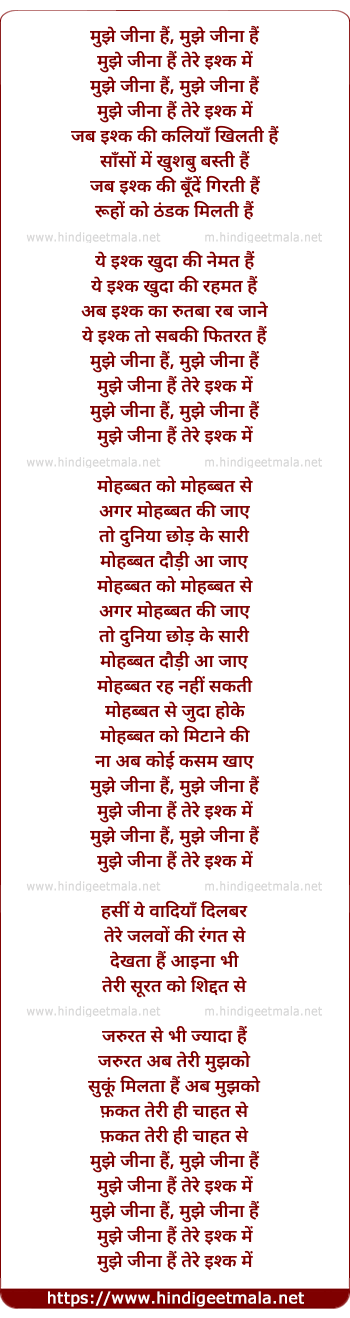 Lyrics of Mujhe Jeena Hai - मुझे जीना हैं
