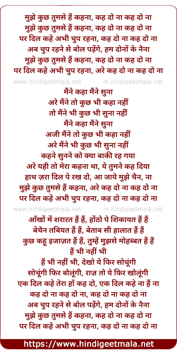 Lyrics of Mujhe Kuchh Tumse Hai Kehna - मुझे कुछ तुमसे हैं कहना