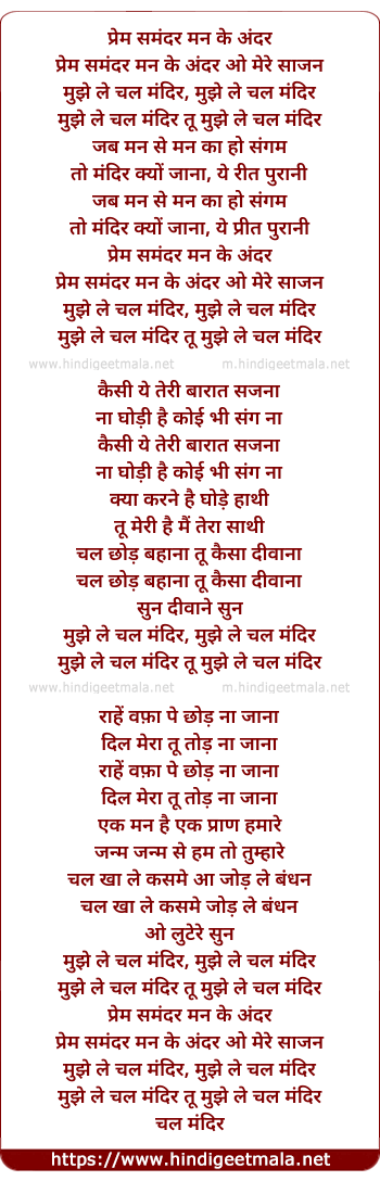 Lyrics of Mujhe Le Chal Mandir - मुझे ले चल मंदिर