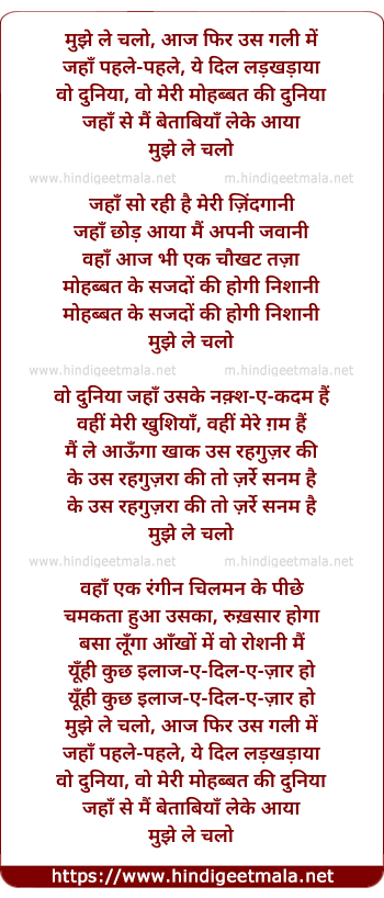 Lyrics of Mujhe Le Chalo Aaj Phir Us Gali Men - मुझे ले चलो आज फिर उस गली में