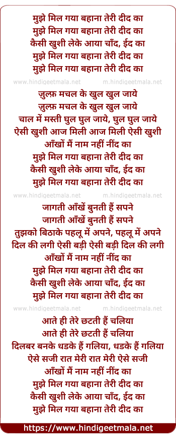 Lyrics of Mujhe Mil Gaya Bahana Teri Did Ka - मुझे मिल गया बहाना तेरी दीद का