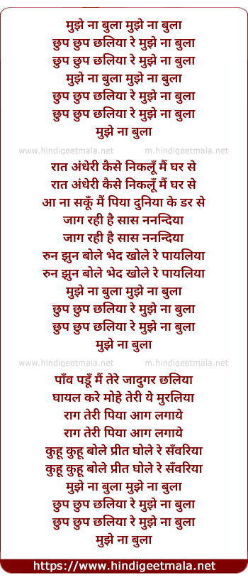 Lyrics of Mujhe Na Bula Chhup Chhup - मुझे ना बुला छुप छुप