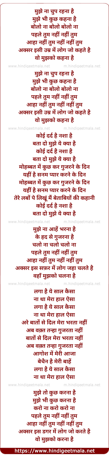 Lyrics of Mujhe Na Chup Rehna Hai - मुझे ना चुप रहना है