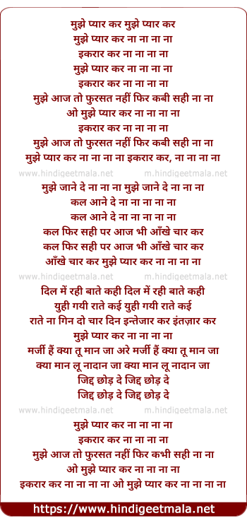 Lyrics of Mujhe Pyaar Kar Na Na Ikrar Kar - मुझे प्यार कर ना ना इकरार कर