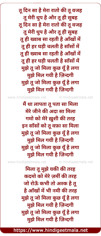 Lyrics of Mujhe Tu Jo Milaa - मुझे तू जो मिला