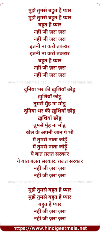 Lyrics of Mujhe Tum Se Bahot Hai Pyaar - मुझे तुमसे बहुत है प्यार