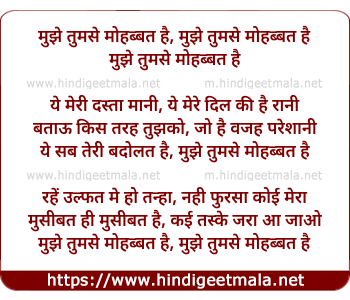 Lyrics of Mujhe Tumse Mohabbat Hai - मुझे तुमसे मोहब्बत है