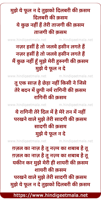 Lyrics of Mujhe Ye Phool Na De - मुझे ये फूल ना दे